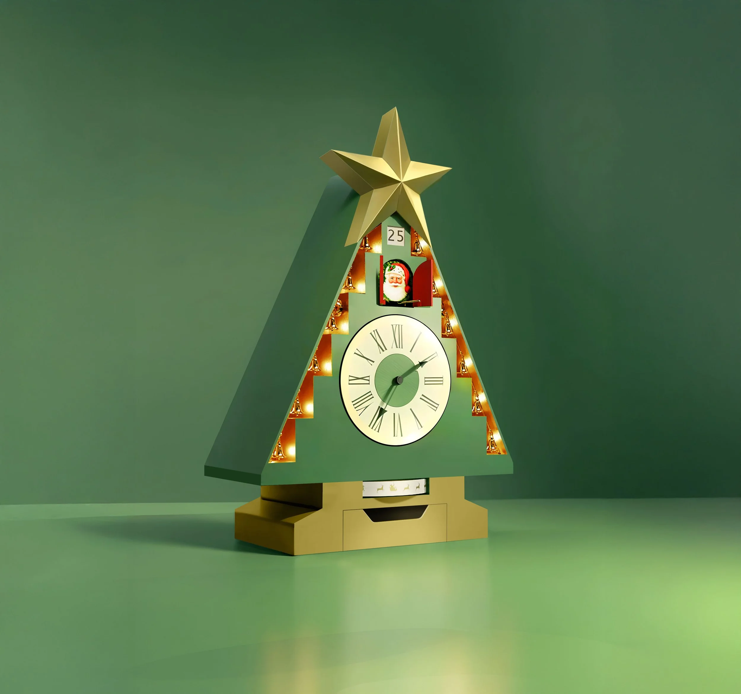 ADVNTREE reimagines the advent calendar as a living timepiece. A sculptural Christmas tree that celebrates craftsmanship, anticipation, and joy. Each day, it releases a special pod at a preset hour, marked by the gentle sound of sleigh bells and a festive appearance from Santa. Designed for lasting use and made from sustainable materials, ADVNTREE turns the countdown to Christmas into a timeless ritual of wonder.